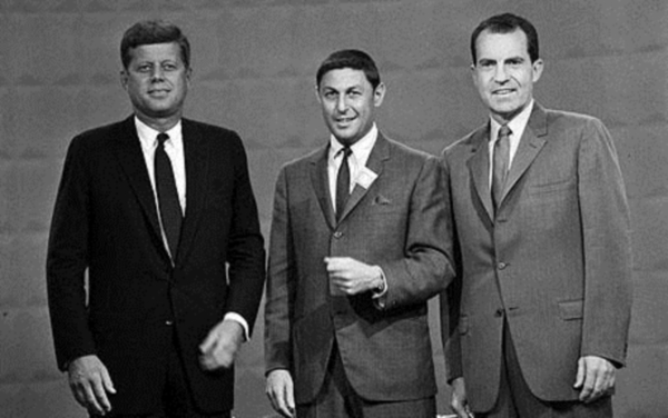 Ma facciamo un passo indietro, rimanendo sul tema delle elezioni elettorali. Cosa rende queste elezioni politiche differenti e memorabili rispetto alle altre? La sera del 26 settembre del 1960, ben settanta milioni di americani seguirono in diretta televisiva (trasmessa dalla CBS) il dibattito fra i candidati alla Casa Bianca. Non si era mai visto uno scontro politico in televisione. Tutto lasciava intendere che la vittoria sarebbe andata a Nixon ma la fermezza, la compostezza, la disinvoltura e la capacità comunicativa di Kennedy convinsero il pubblico americano che lo votarono. Il caso venne studiato da numerosi analisti che concordarono nel giudicare il mezzo televisivo come “ago della bilancia” delle campagne elettorali. Fare politica in un certo senso, dal 1960 diventa un modo per fare spettacolo e per comunicare alla massa.